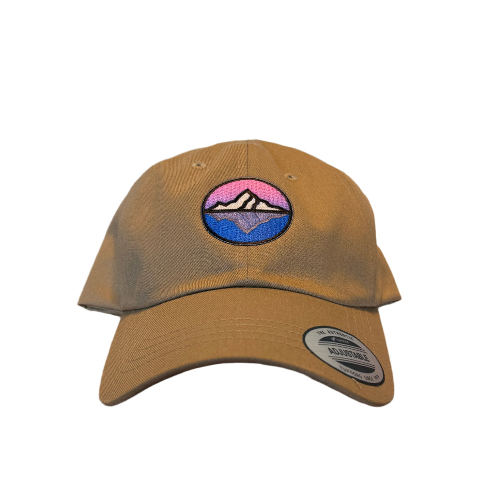 Adult adjustable 6 panel unstructured Dad cap with Peak to Sea Reflection embroidered patch