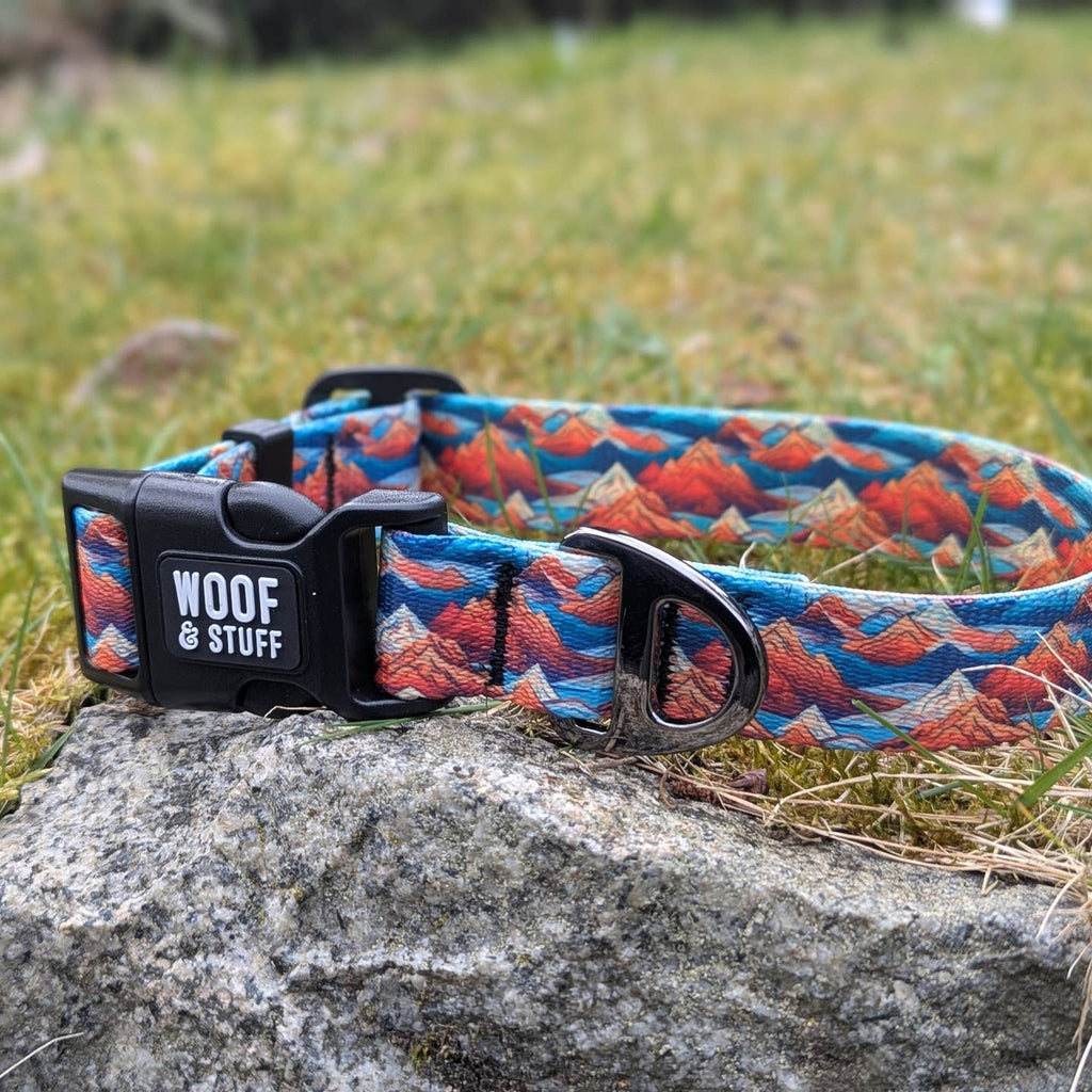 Unleash your pup's adventurous spirit with the Woof & Stuff handcrafted Adventure Dog Collar, proudly made in the heart of Canada. This collar is more than just a stylish accessory – it's a reliable companion for your furry explorer. Crafted from premium materials, it ensures your pet stays comfortable during every splash and dash. The adjustable sizing provides a secure fit, whilst the vibrant colours reflect the rugged beauty of the Canadian outdoors.